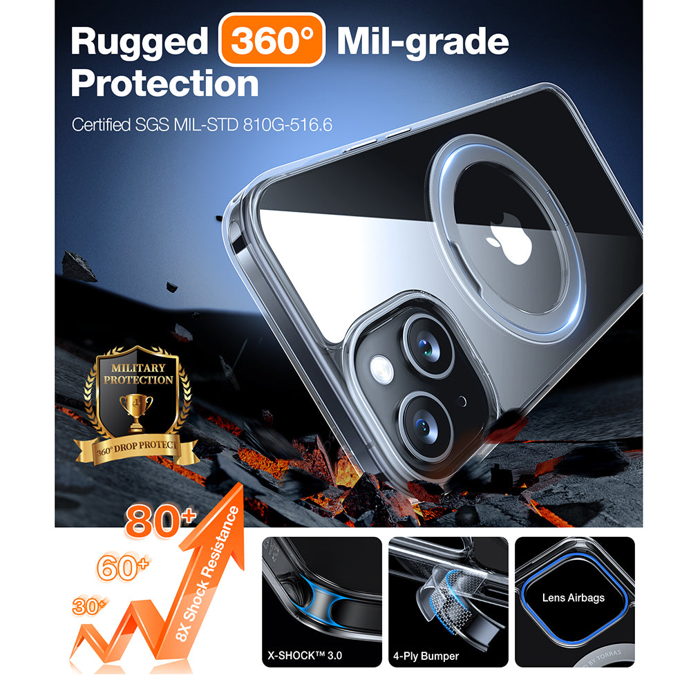 MagSafe Case for Apple iPhone 15, Torras, Ostand Pro, Transparent