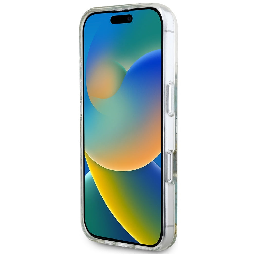MagSafe Case for Apple iPhone 16, Guess, Resin Flowers and Glitter, Turquoise