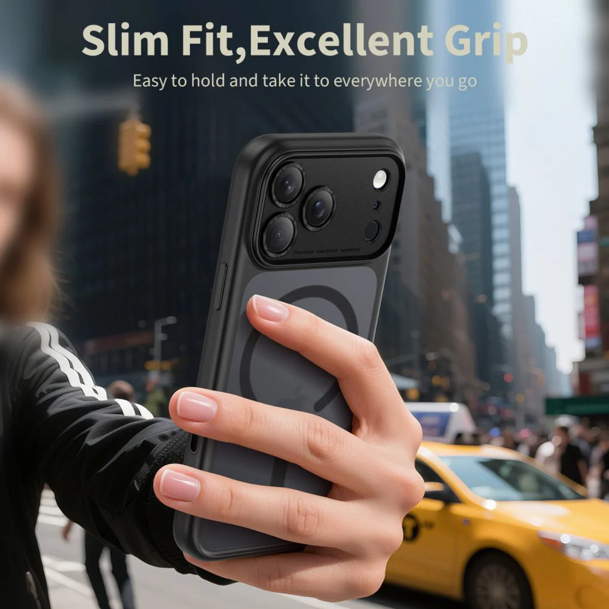 The case features protected buttons, specially designed for camera control, with touch-sensitive coverage that ensures excellent response