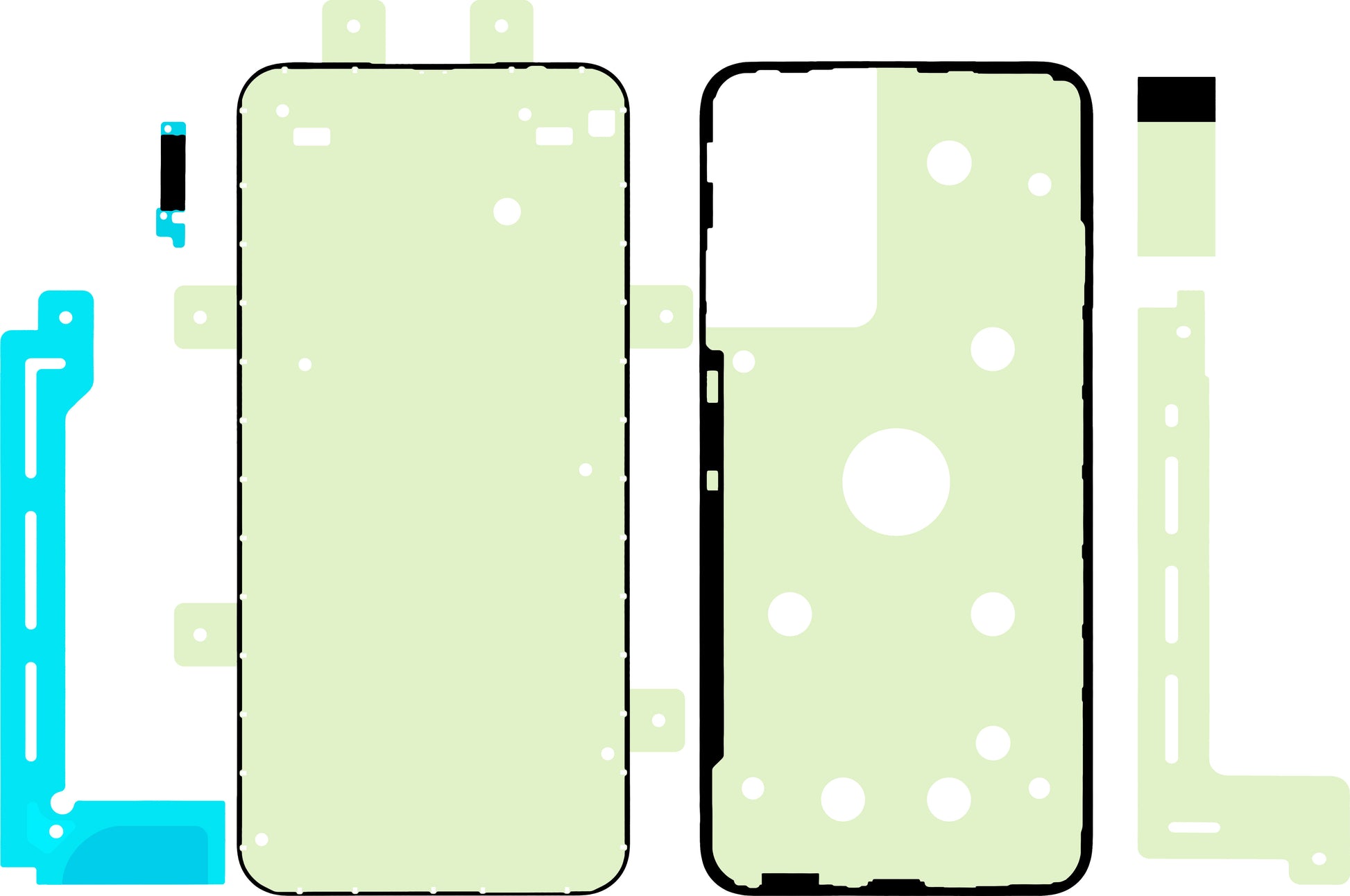 Adhesives designed for attaching the display to the phone frame.