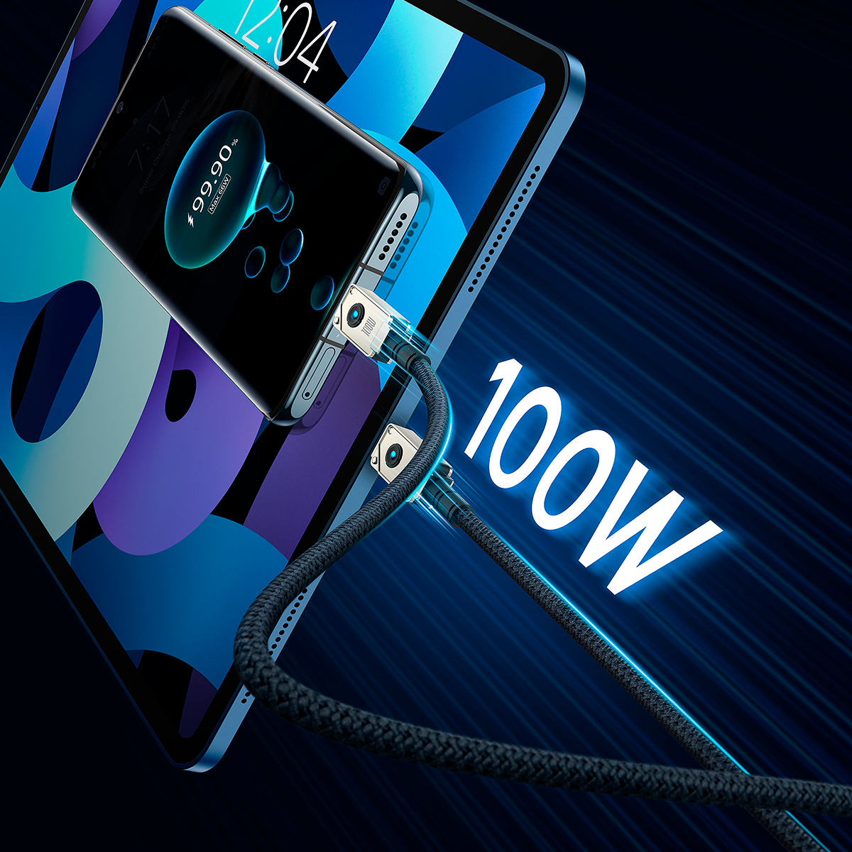With support for up to 100W charging, the cable enables ultra-fast power supply for compatible smartphones, tablets, and laptops,