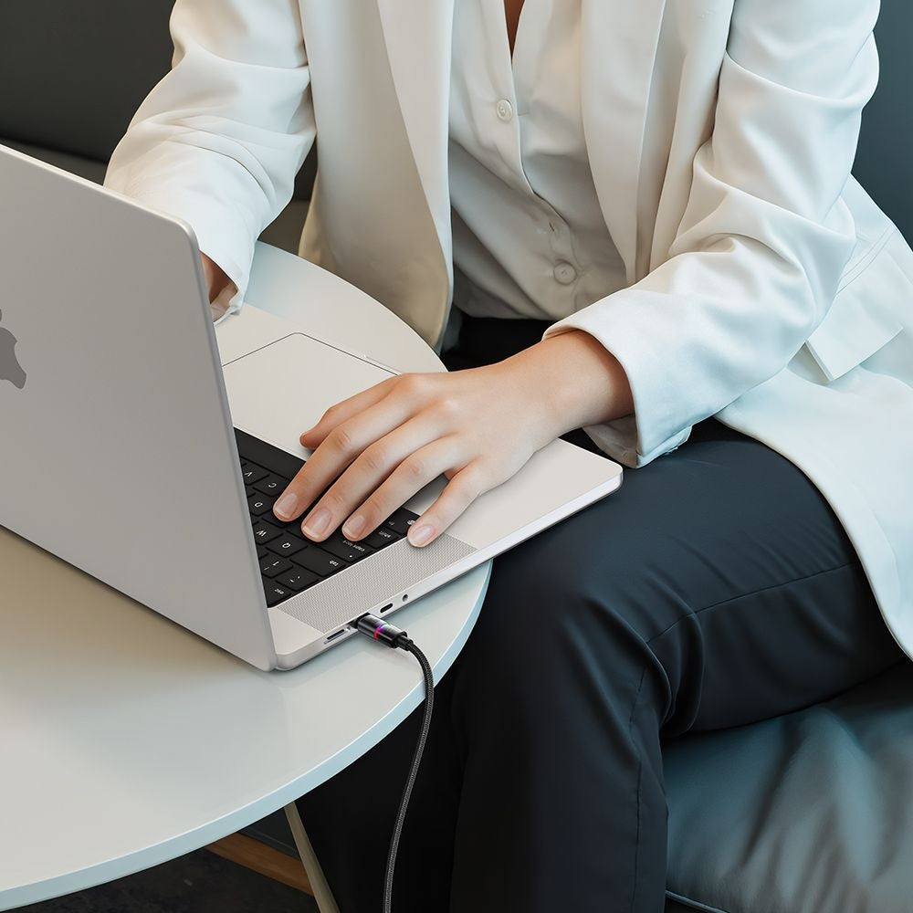 The cable is equipped with multicolor LED lighting that activates during charging, providing a pleasant visual effect and allowing easy identification of the power status.