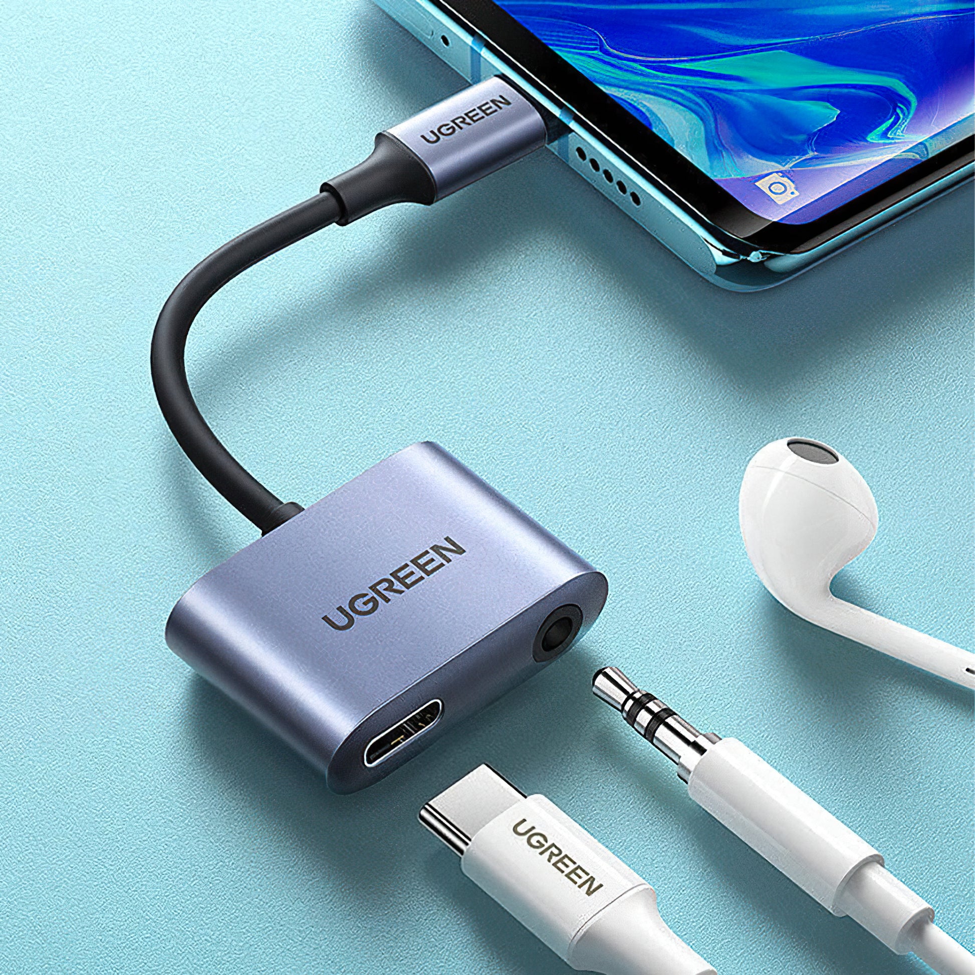 The USB-C to 3.5mm / USB-C UGREEN CM231 audio adapter allows you to listen to music and charge your phone simultaneously.