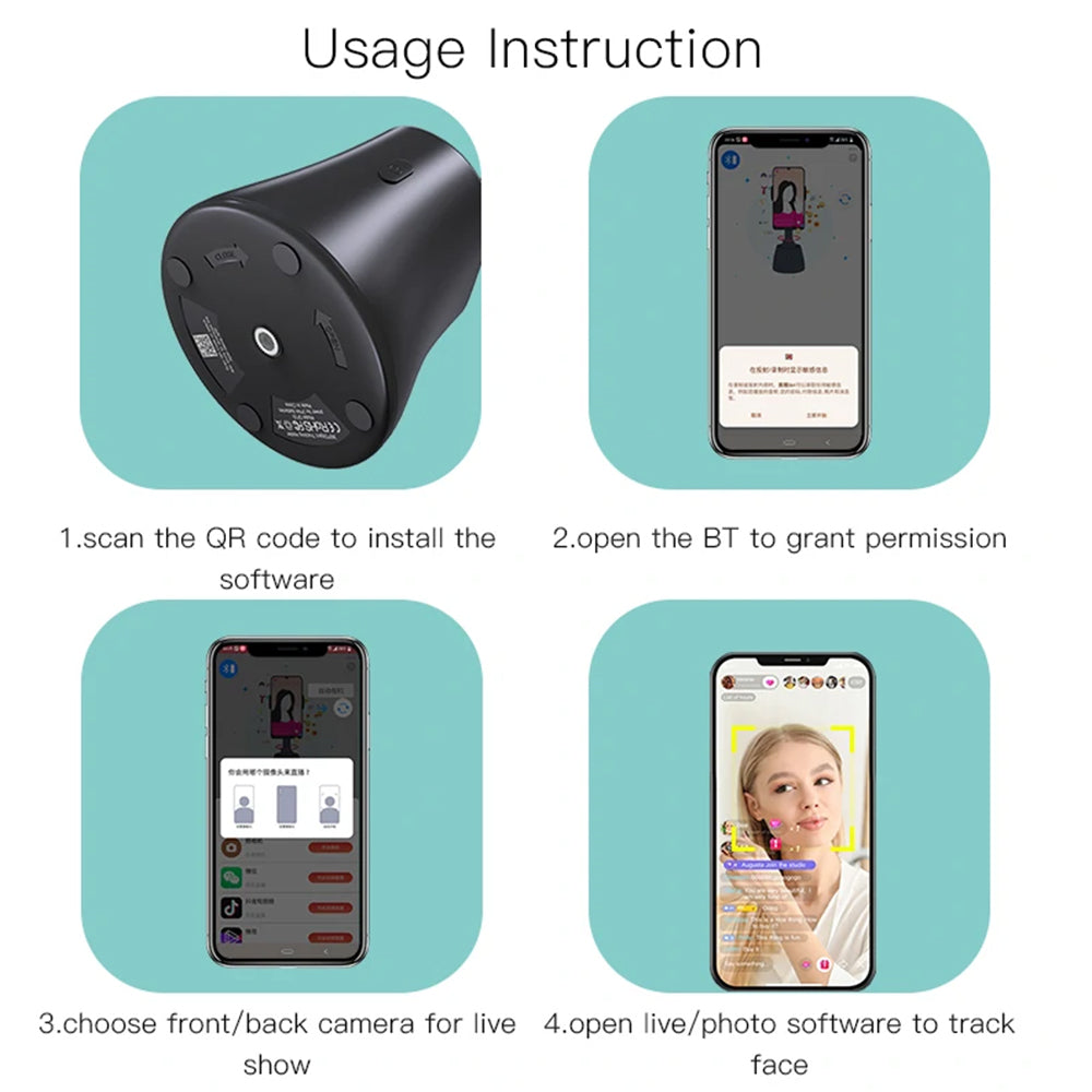 • We have a special selfie stick just for you that tracks your face! It's a gimbal that you can take anywhere you want to create content. In vertical or horizontal position, your photos and videos will turn out great!