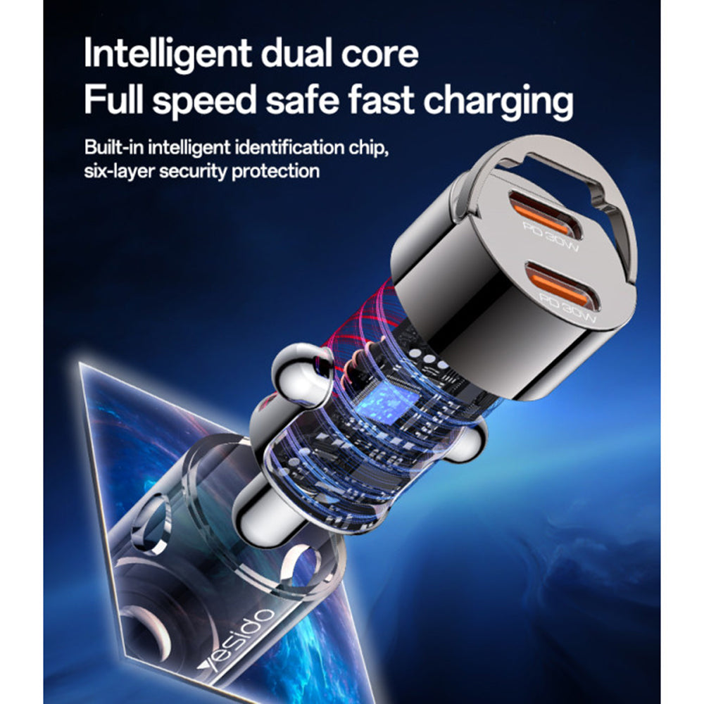 Yesido Y69 Car Charger, 30W, 3A, 2 x USB-C, Black